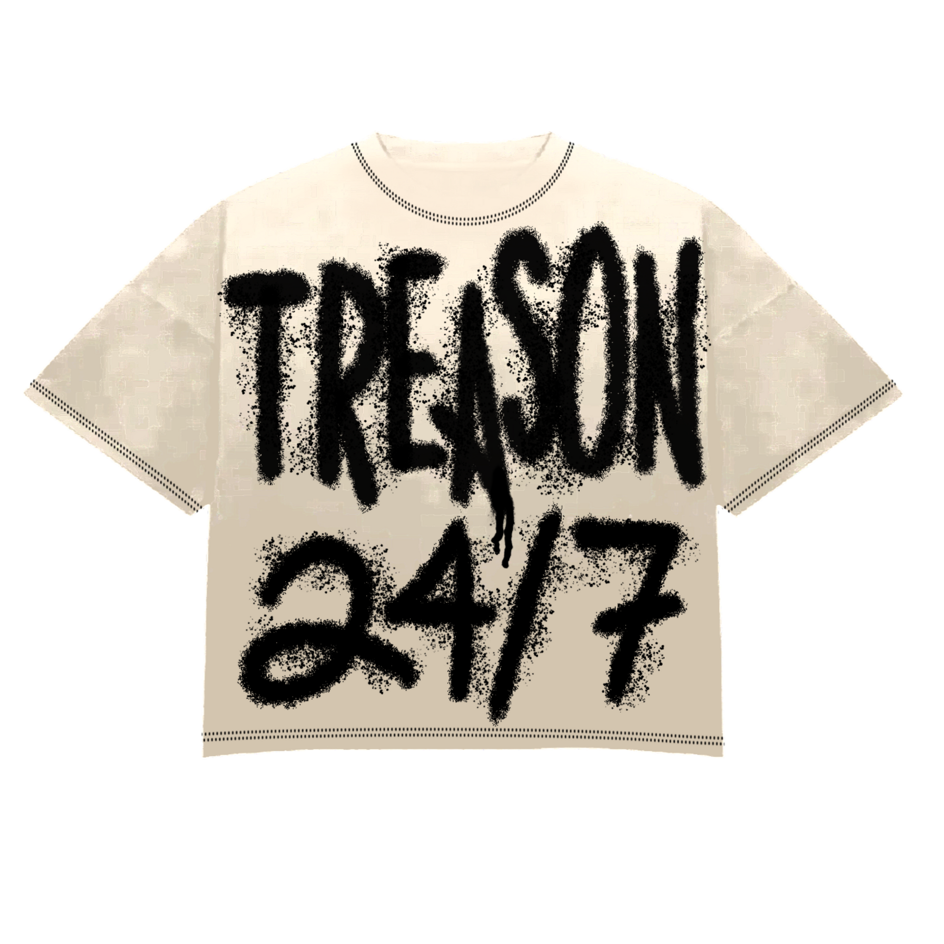 No off days, no off hours. This boxy, slightly cropped tee brings effortless edge and all-day attitude. Treason 24/7 is made for the ones who live it nonstop, bold, relentless, always on. Crafted from premium heavyweight cotton with a sharp streetwear silhouette, it’s not just a look, it’s a way of life. Wear it loud. Wear it every damn day.